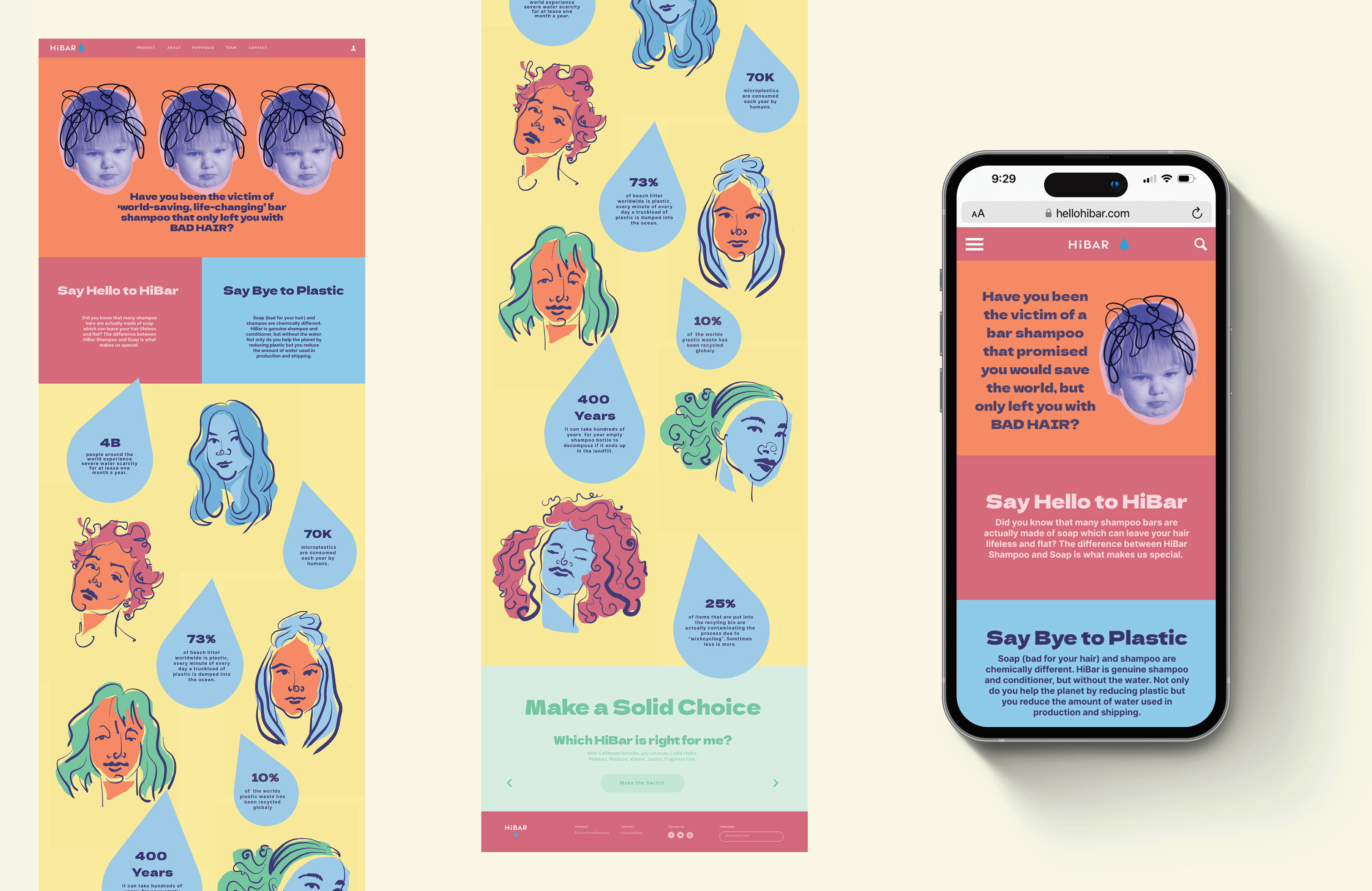Campaign concept for Hibar bar shampoo that tackles skepticism with vibrant illustration and messaging that's as fun as it is honest about plastic-free haircare.
